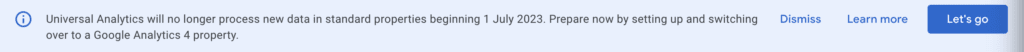 - This won’t affect your existing UA property, and it will continue to collect data until July 2023.