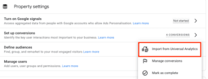 The process for Defining Audiences is the same as setting up conversions – an option to import your audiences from Universal Analytics will appear, click this and follow the instructions.